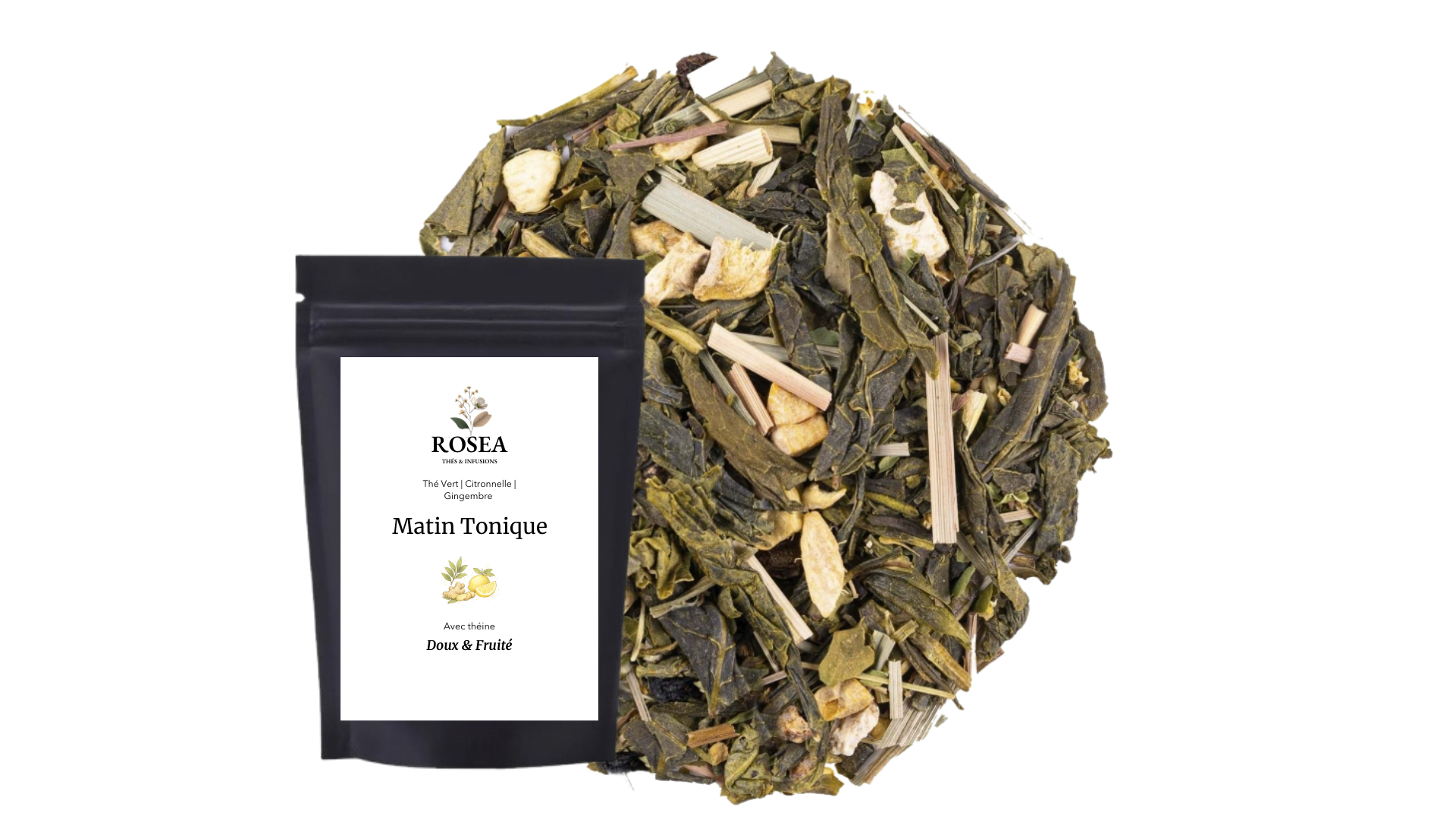Matin Tonique, c'est le thé vert qui réveille vos sens avec caractère ! Un mélange premium parfaitement équilibré entre la fraîcheur citronnée, la chaleur épicée du gingembre et les notes herbacées du thé vert Sencha.